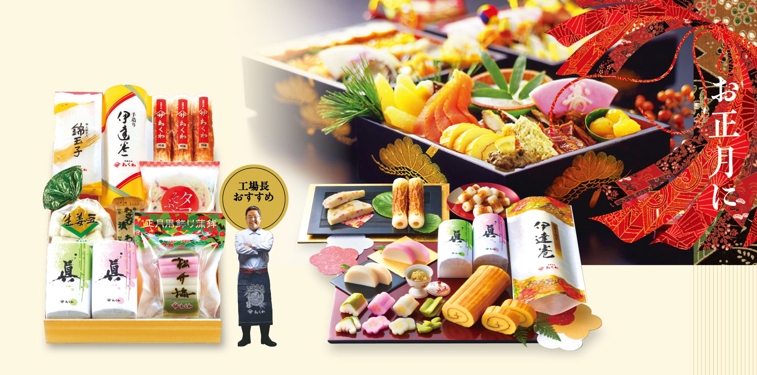 伊達巻・蒲鉾・錦玉子・松竹梅が揃った