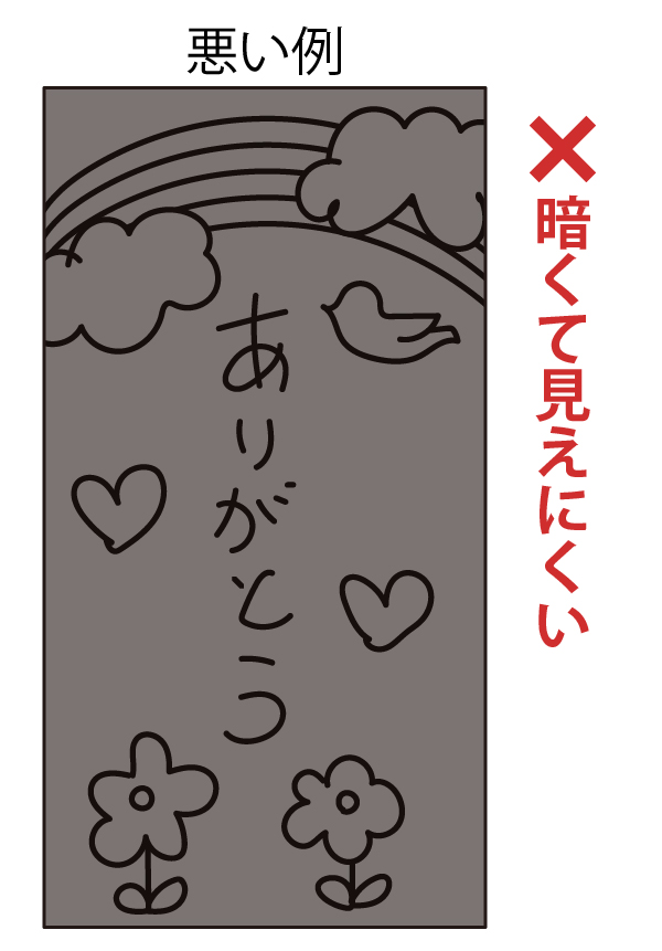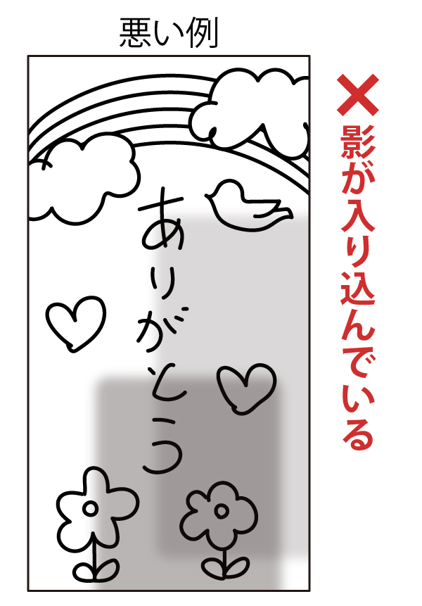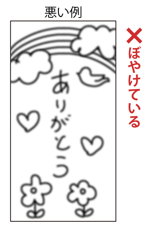 - 細かい模様や小さな文字は鮮明にプリントできない可能性がありますので、なるべく大きくはっきりと書いてください。